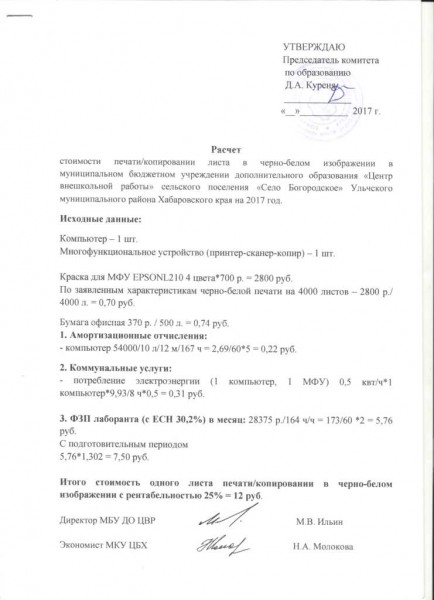 Документ об утверждении стоимости обучения по каждой образовательной программе